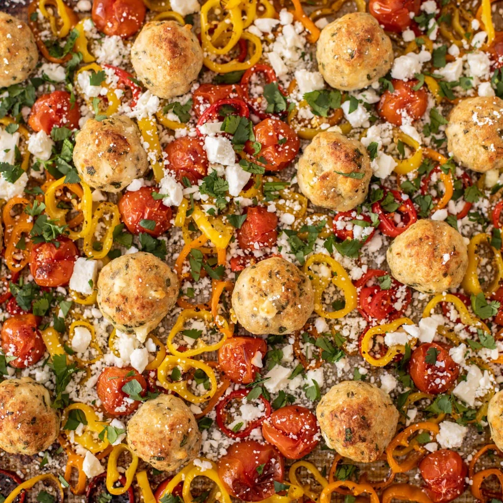 Heat the oven to 220C and line or lightly oil a large tray. Cut the red onion into wedges and the courgettes into thick half-moons, then toss them with the cherry tomatoes, 2 tablespoons olive oil, a pinch of salt, and a little black pepper. Spread the vegetables out well and start them roasting first so they get a head start on caramelization.